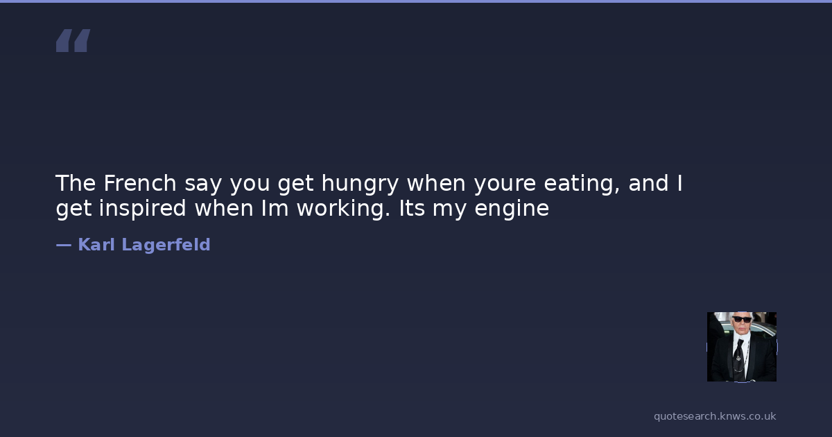 The French say you get hungry when youre eating, and I get inspired when Im working. Its my engine