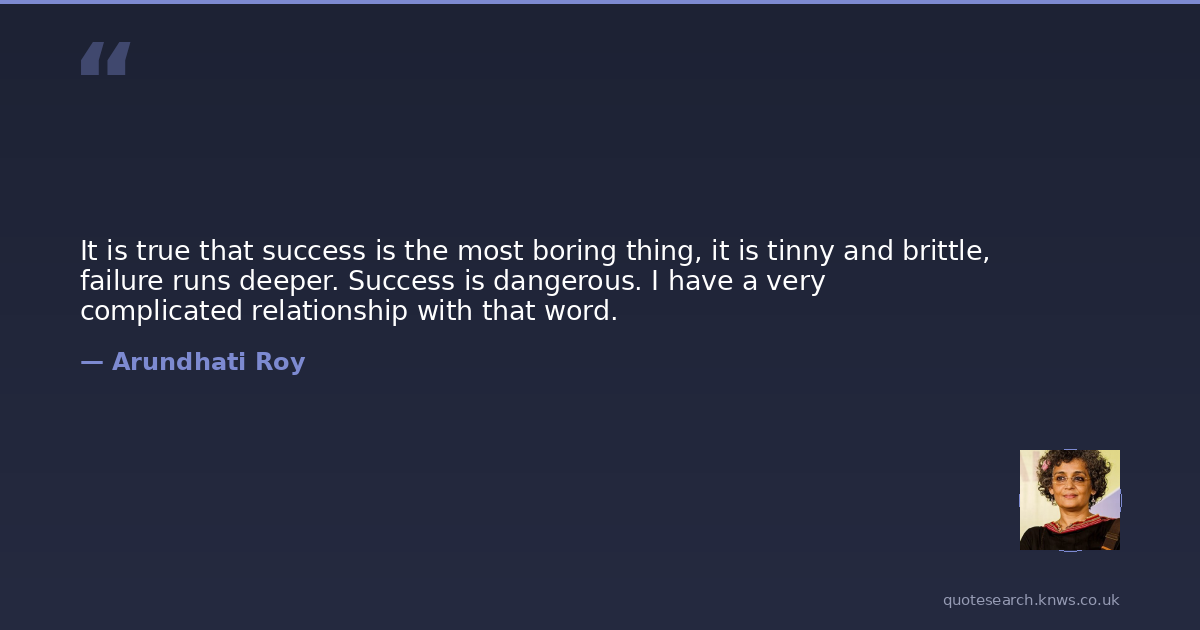 It is true that success is the most boring thing, it is tinny and brittle, failure runs deeper. Success is dangerous. I have a very complicated relationship with that word.