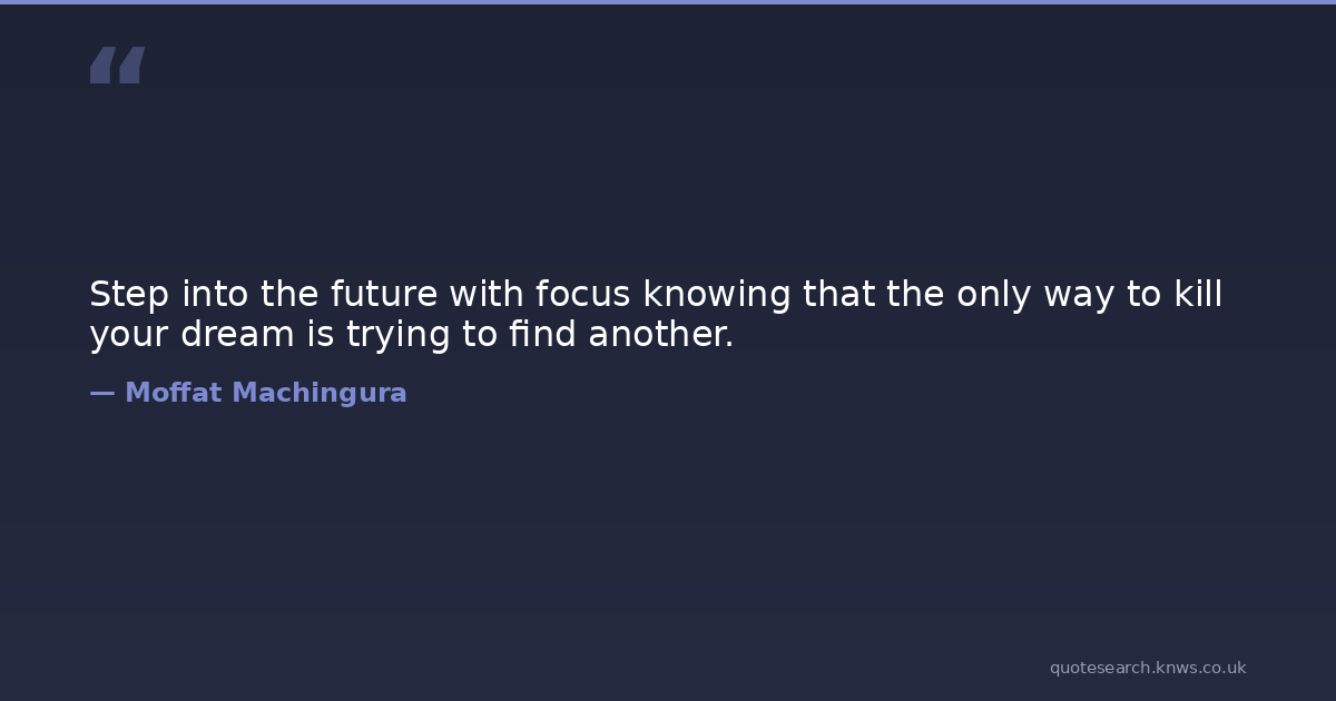 Step into the future with focus knowing that the only way to kill your dream is trying to find another.