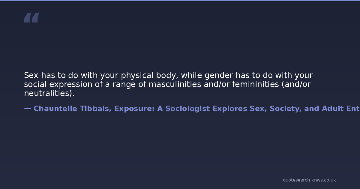 Sex has to do with your physical body, while gender has to do with your social expression of a range of masculinities and/or femininities (and/or neutralities).