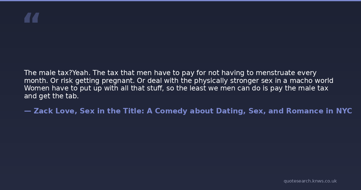The male tax?Yeah. The tax that men have to pay for not having to menstruate every month. Or risk getting pregnant. Or deal with the physically stronger sex in a macho world Women have to put up with all that stuff, so the least we men can do is pay the male tax and get the tab.