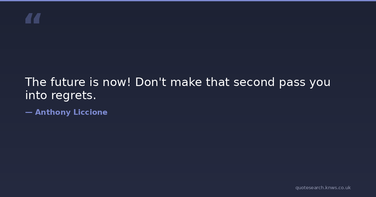 The future is now! Don't make that second pass you into regrets.