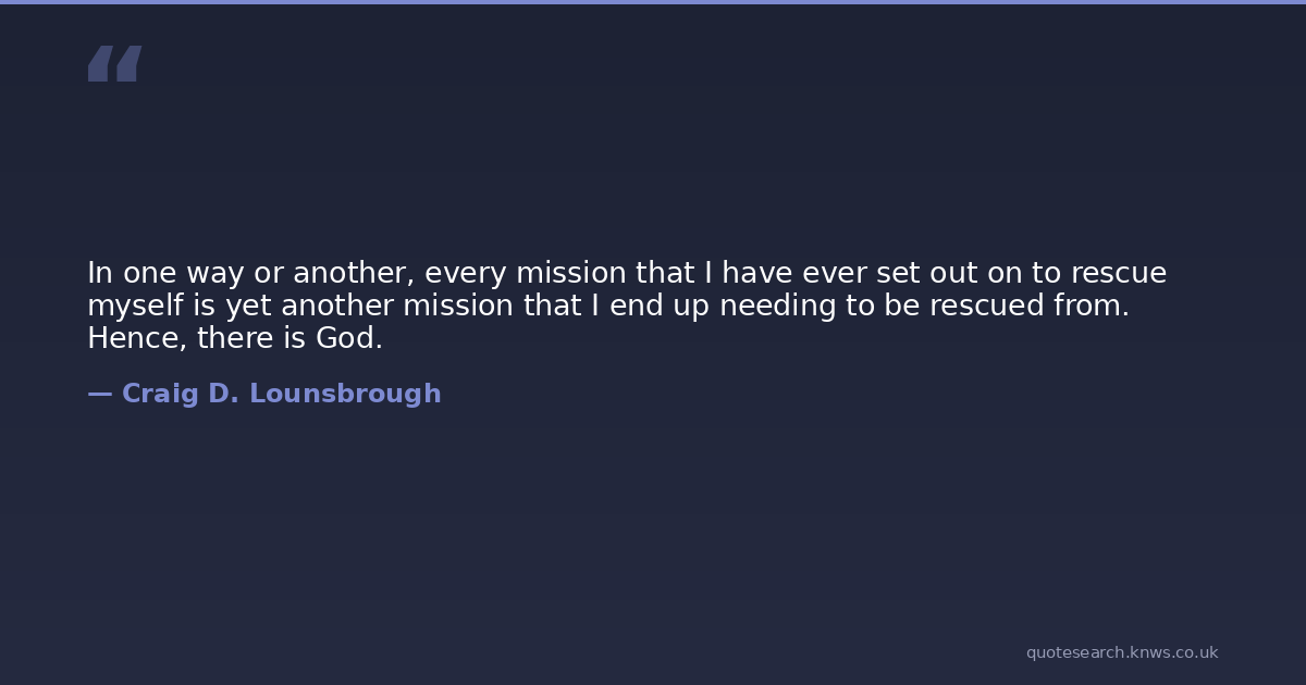 In one way or another, every mission that I have ever set out on to rescue myself is yet another mission that I end up needing to be rescued from. Hence, there is God.