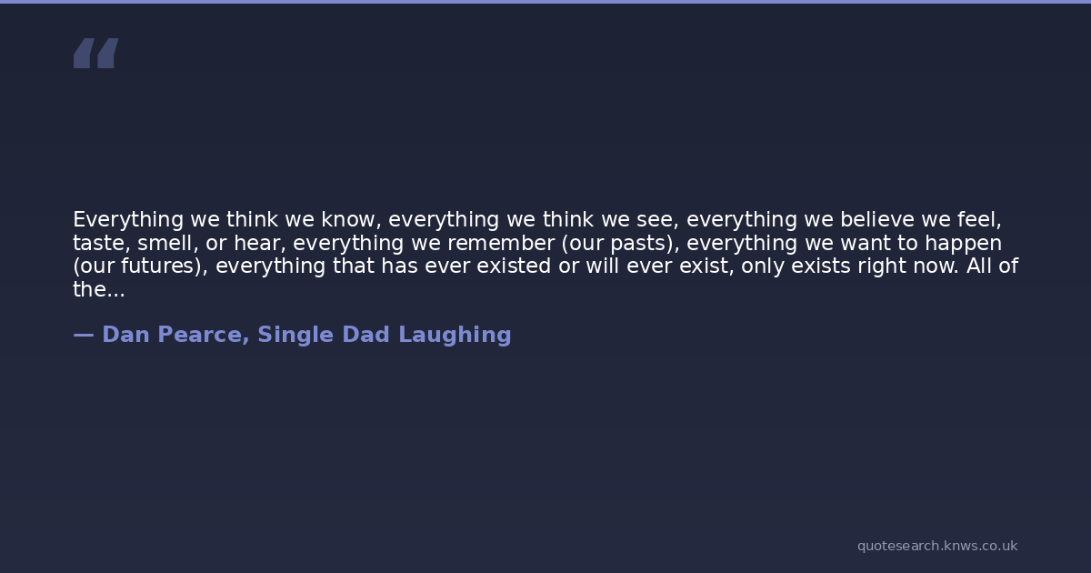 Everything we think we know, everything we think we see, everything we believe we feel, taste, smell, or hear, everything we remember (our pasts), everything we want to happen (our futures), everything that has ever existed or will ever exist, only exists right now. All of these things are nothing more than electric signals being passed through our brains and bodies, right now. It is all energy flowing through us right now. The past exists only in our minds. We are the ones who bring it into reality. We are the ones who bring it into the present. We are the ones who make it real.
