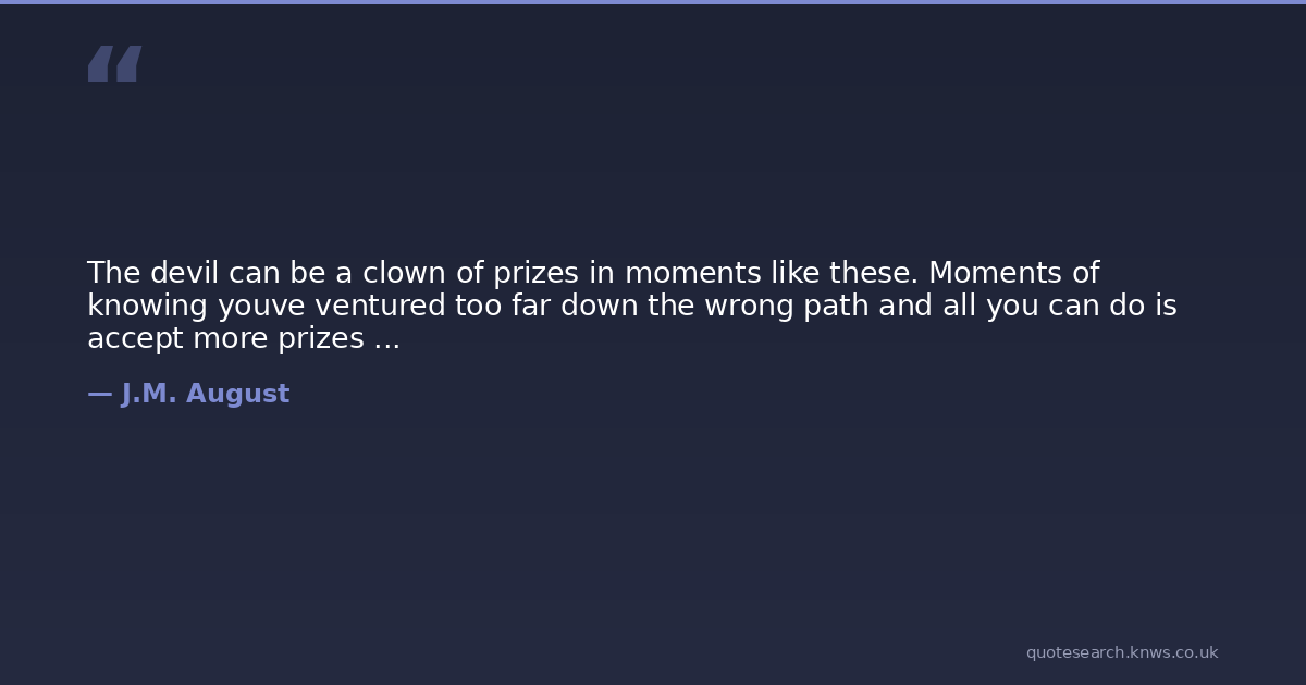 The devil can be a clown of prizes in moments like these. Moments of knowing youve ventured too far down the wrong path and all you can do is accept more prizes ...