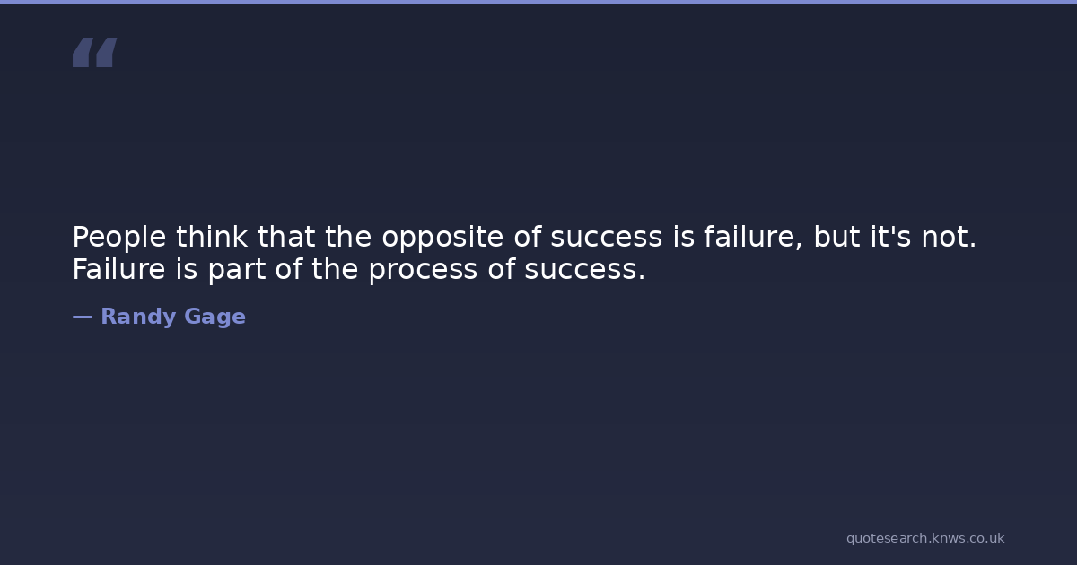 People think that the opposite of success is failure, but it's not. Failure is part of the process of success.