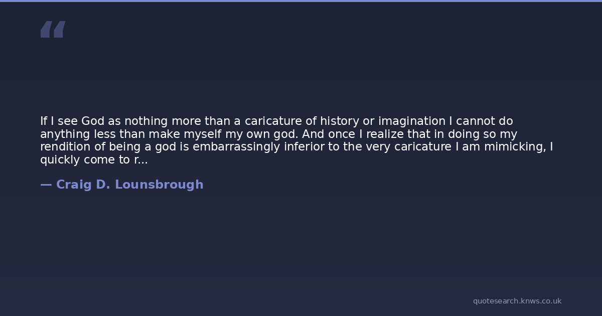 If I see God as nothing more than a caricature of history or imagination I cannot do anything less than make myself my own god. And once I realize that in doing so my rendition of being a god is embarrassingly inferior to the very caricature I am mimicking, I quickly come to realize that maybe the only thing that can be god is a God. And if that is the case, I suddenly find myself hounded by the stunning reality that God is not a caricature.