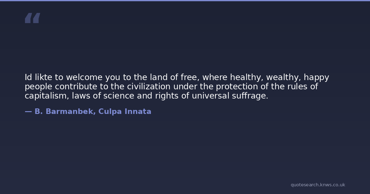 Id likte to welcome you to the land of free, where healthy, wealthy, happy people contribute to the civilization under the protection of the rules of capitalism, laws of science and rights of universal suffrage.