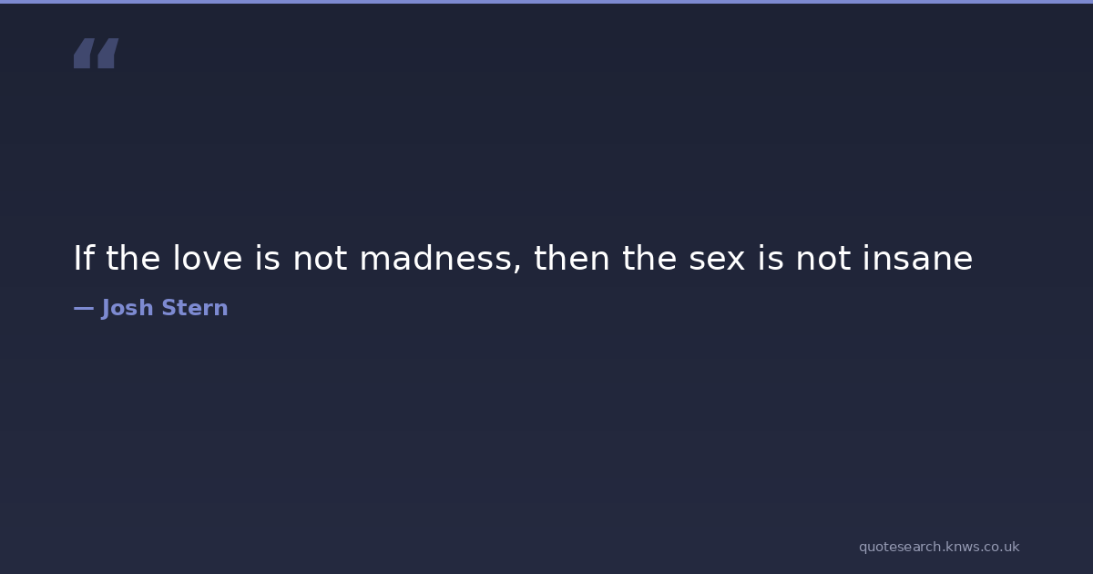If the love is not madness, then the sex is not insane absurd humor insane love madness sex Download Image Share on X Share on Facebook Copy Link