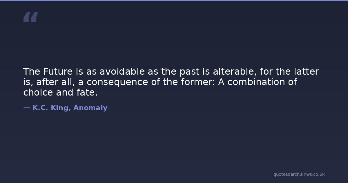 The Future is as avoidable as the past is alterable, for the latter is, after all, a consequence of the former: A combination of choice and fate.