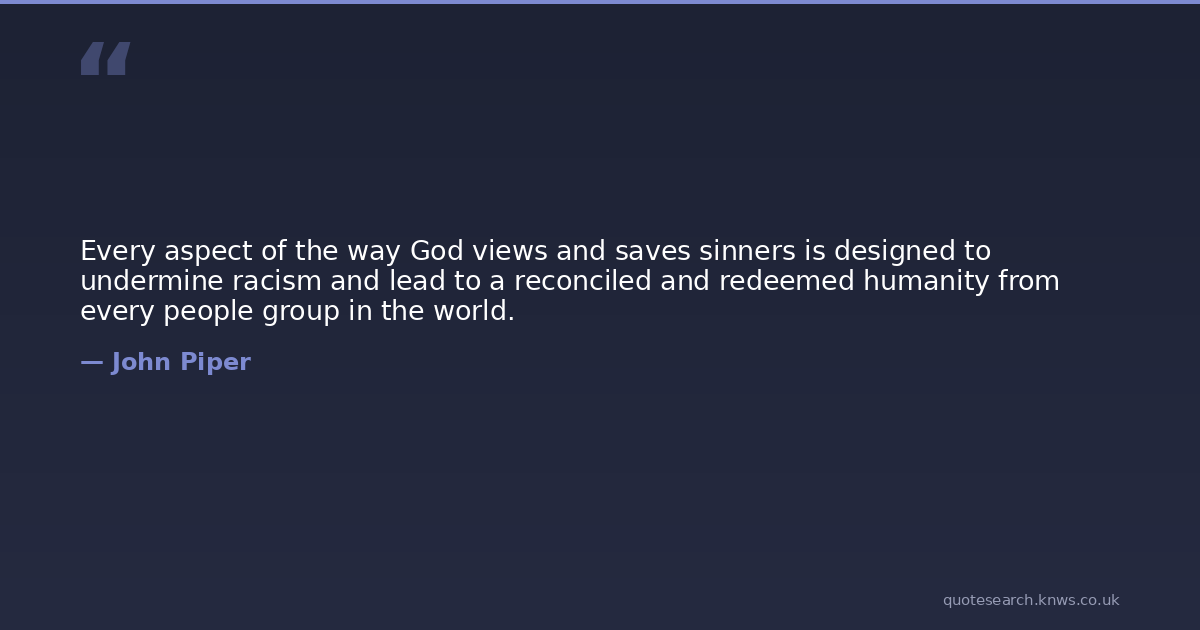 Every aspect of the way God views and saves sinners is designed to undermine racism and lead to a reconciled and redeemed humanity from every people group in the world.