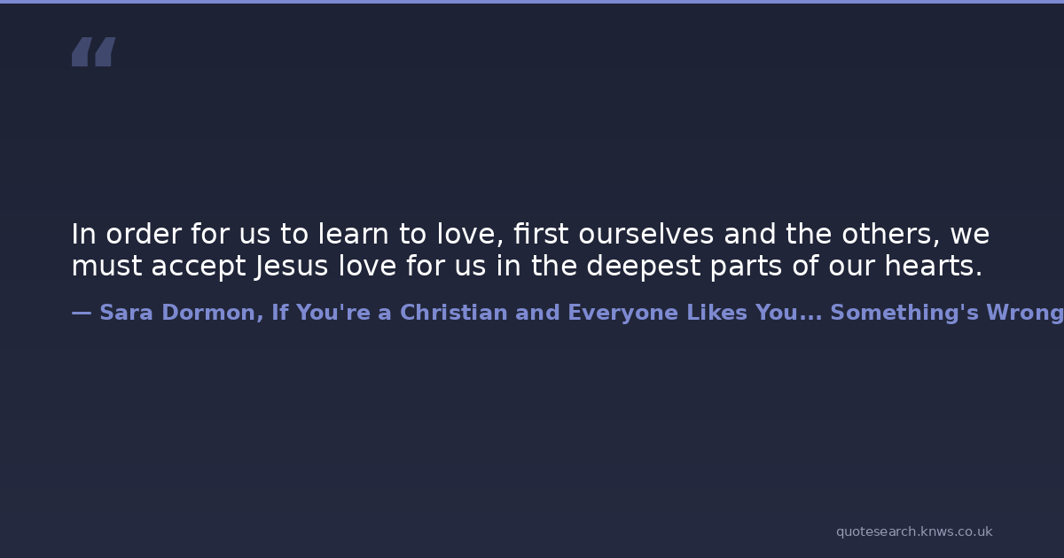 In order for us to learn to love, first ourselves and the others, we must accept Jesus love for us in the deepest parts of our hearts.