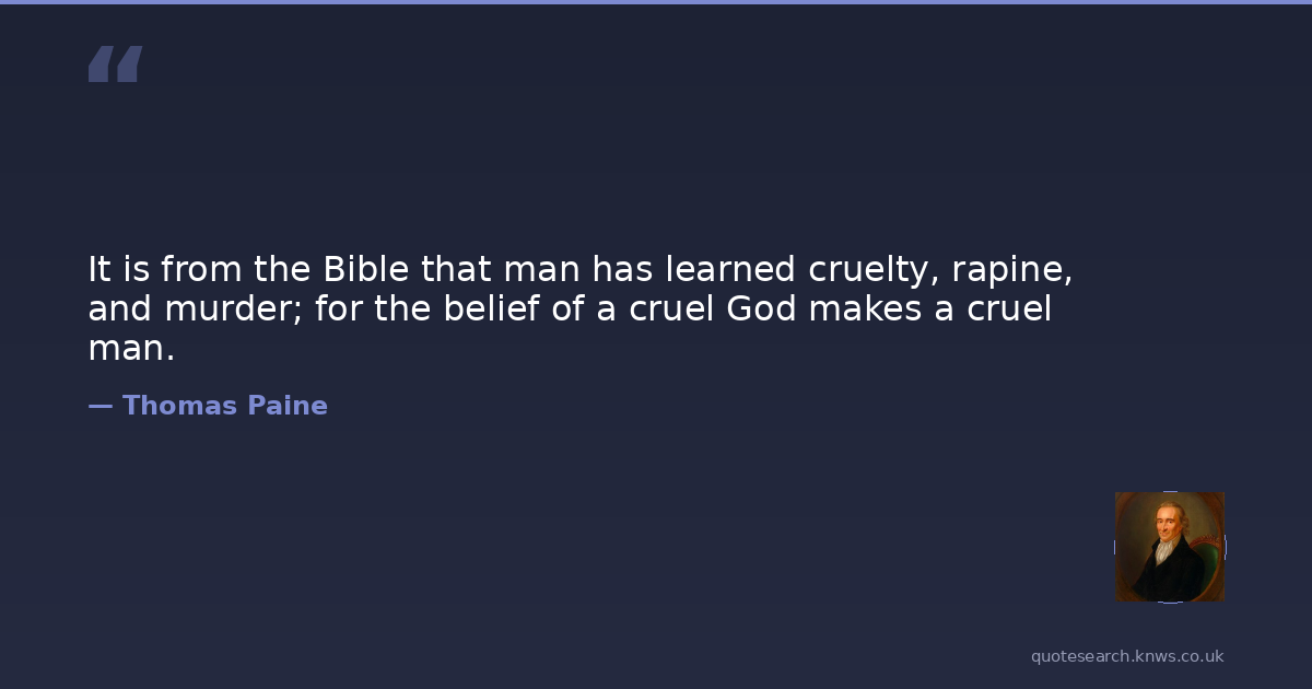 It is from the Bible that man has learned cruelty, rapine, and murder; for the belief of a cruel God makes a cruel man.