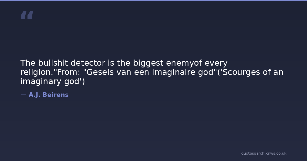 The bullshit detector is the biggest enemyof every religion."From: "Gesels van een imaginaire god"('Scourges of an imaginary god')