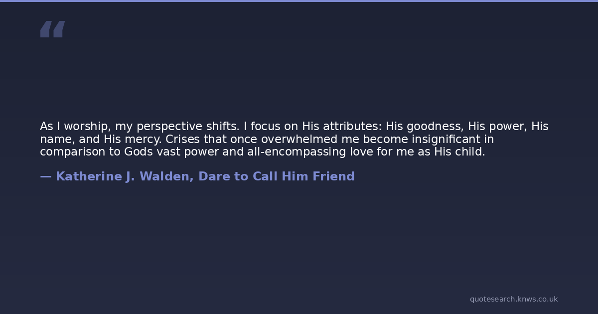 As I worship, my perspective shifts. I focus on His attributes: His goodness, His power, His name, and His mercy. Crises that once overwhelmed me become insignificant in comparison to Gods vast power and all-encompassing love for me as His child.