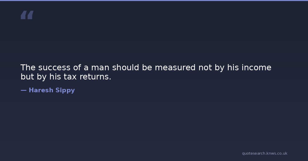 The success of a man should be measured not by his income but by his tax returns.