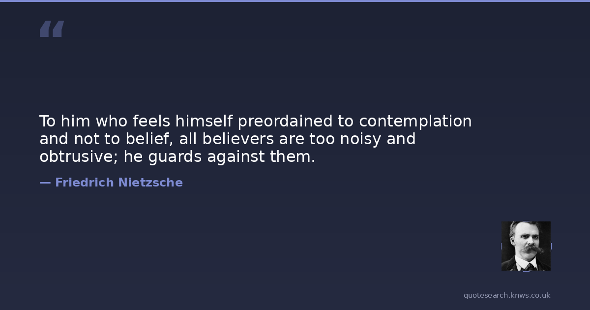 To him who feels himself preordained to contemplation and not to belief, all believers are too noisy and obtrusive; he guards against them.