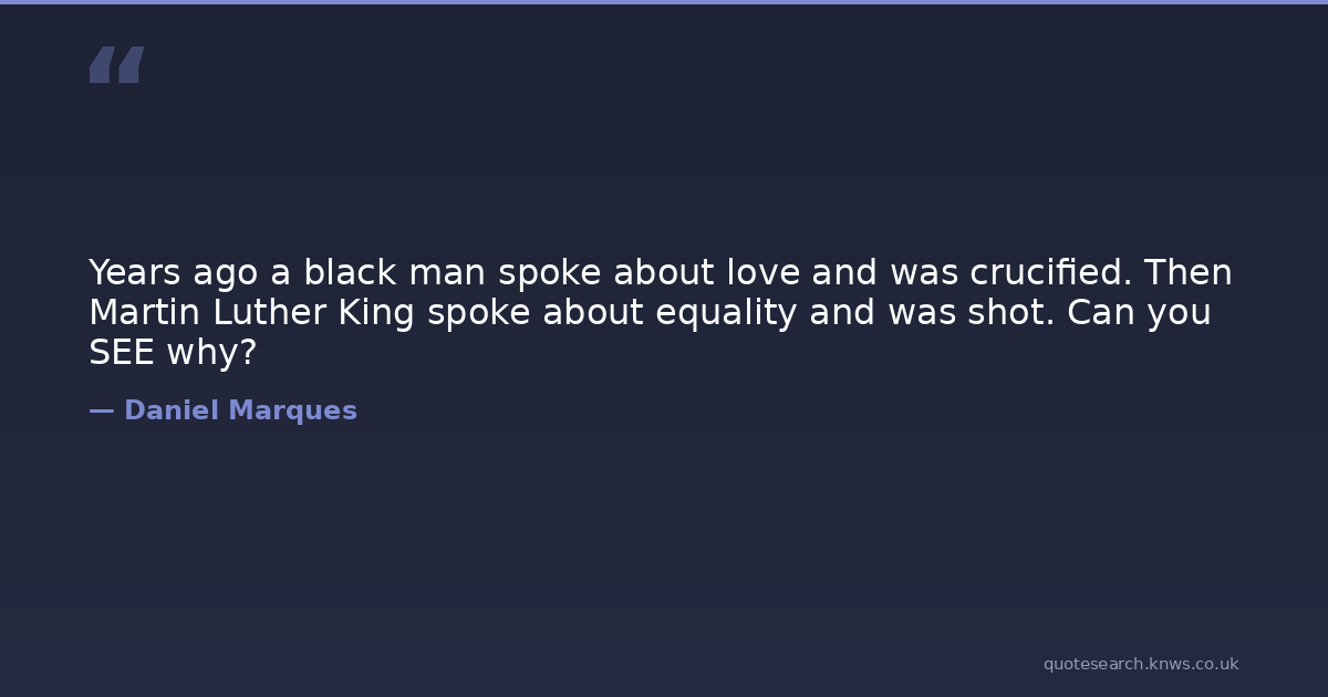 Years ago a black man spoke about love and was crucified. Then Martin Luther King spoke about equality and was shot. Can you SEE why?
