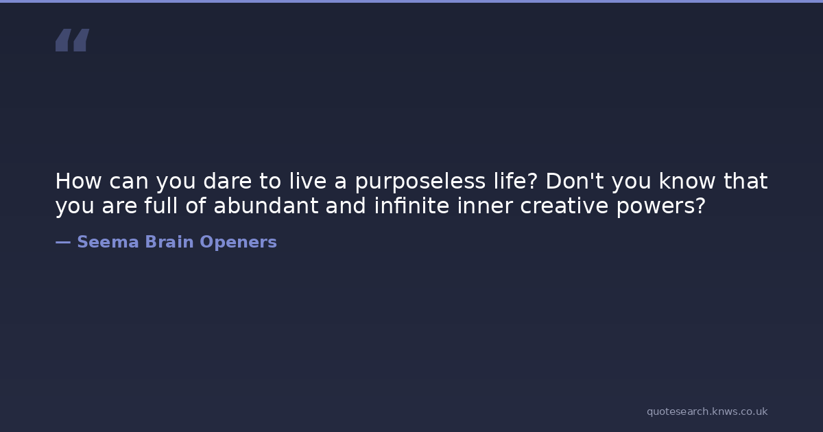 How can you dare to live a purposeless life? Don't you know that you are full of abundant and infinite inner creative powers?