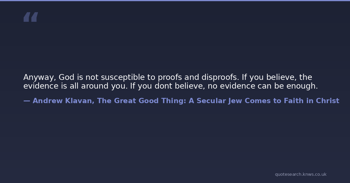 Anyway, God is not susceptible to proofs and disproofs. If you believe, the evidence is all around you. If you dont believe, no evidence can be enough.