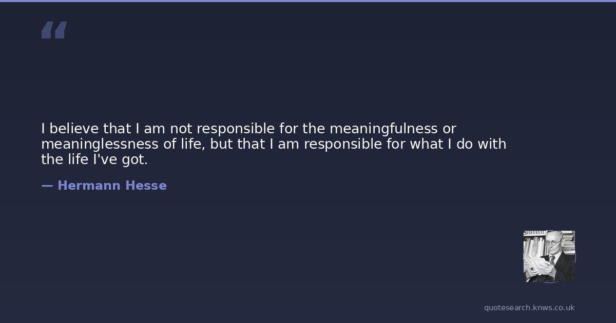 I believe that I am not responsible for the meaningfulness or meaninglessness of life, but that I am responsible for what I do with the life I've got.