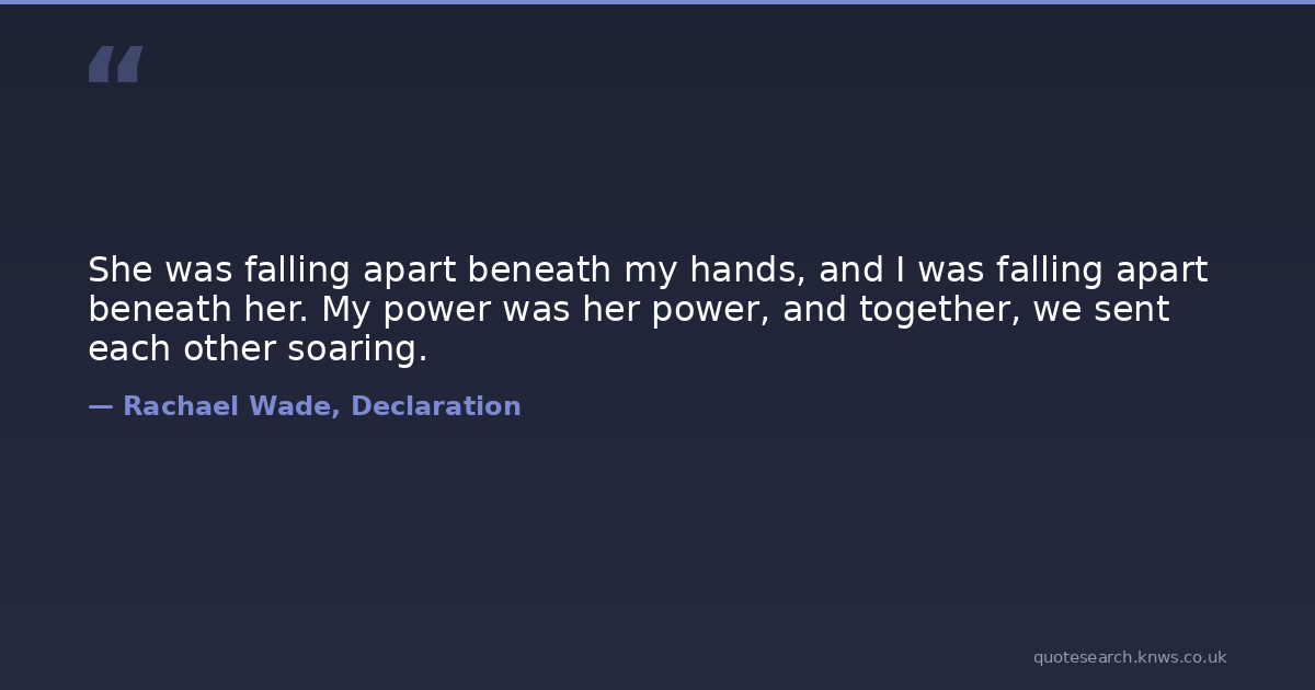 She was falling apart beneath my hands, and I was falling apart beneath her. My power was her power, and together, we sent each other soaring.