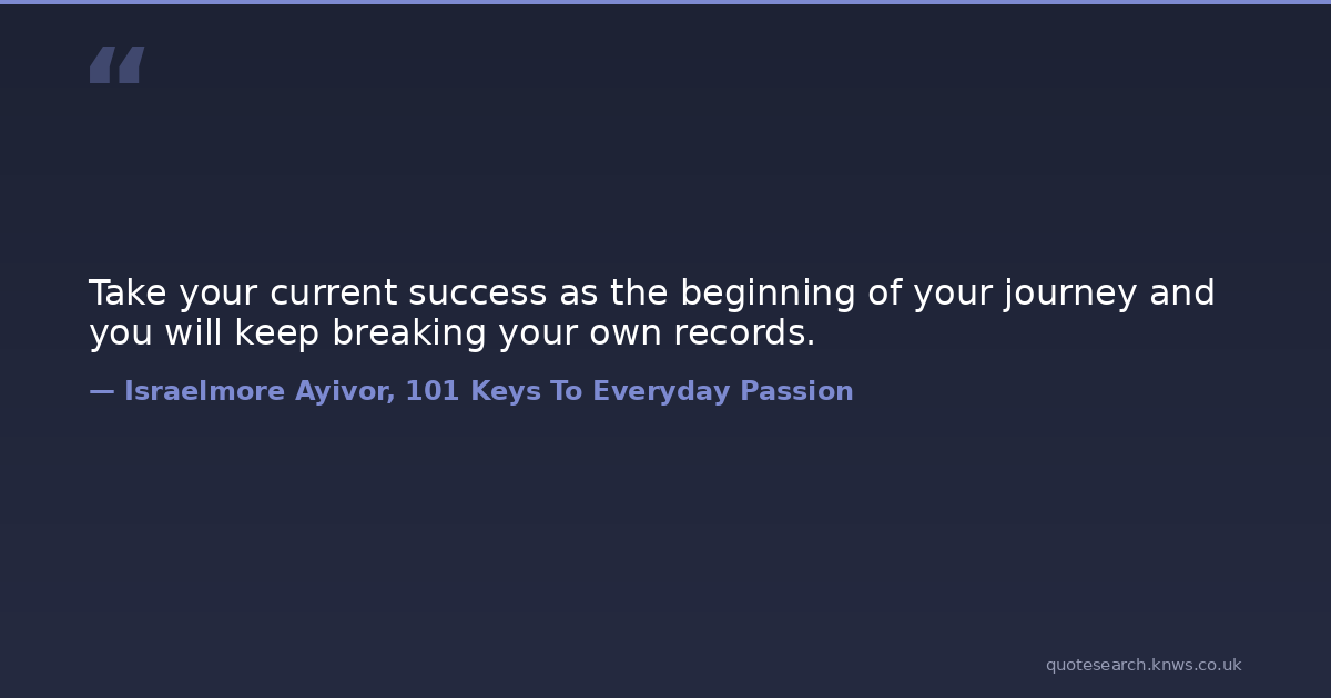 Take your current success as the beginning of your journey and you will keep breaking your own records.