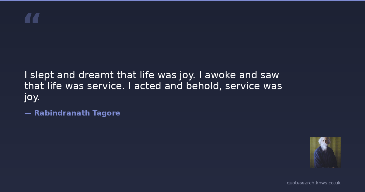 I slept and dreamt that life was joy. I awoke and saw that life was service. I acted and behold, service was joy.