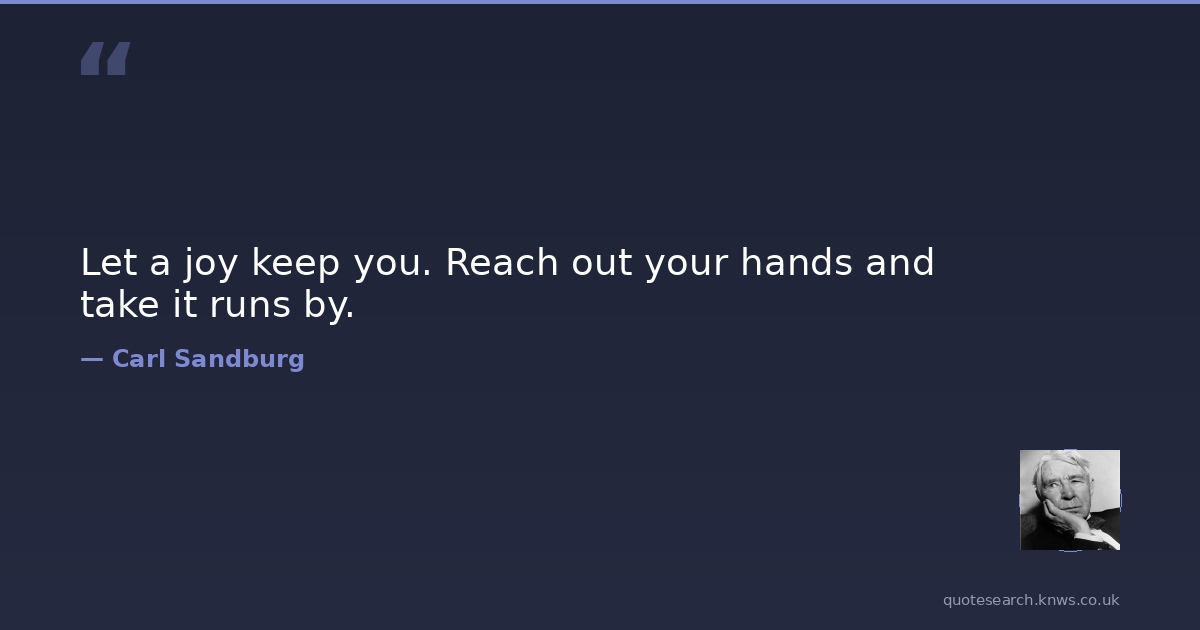 Let a joy keep you. Reach out your hands and take it runs by.