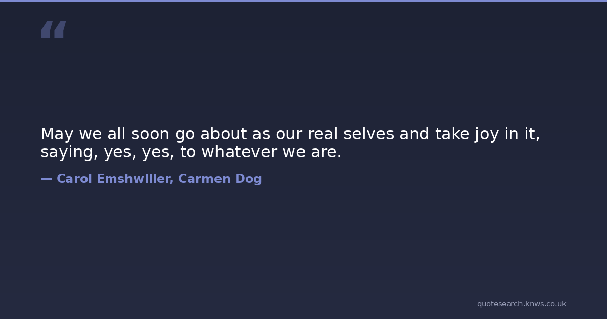 May we all soon go about as our real selves and take joy in it, saying, yes, yes, to whatever we are.