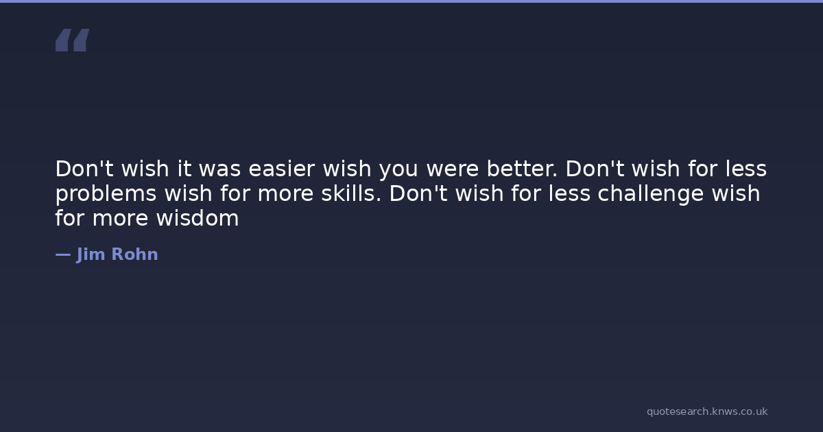 Don't wish it was easier wish you were better. Don't wish for less problems wish for more skills. Don't wish for less challenge wish for more wisdom