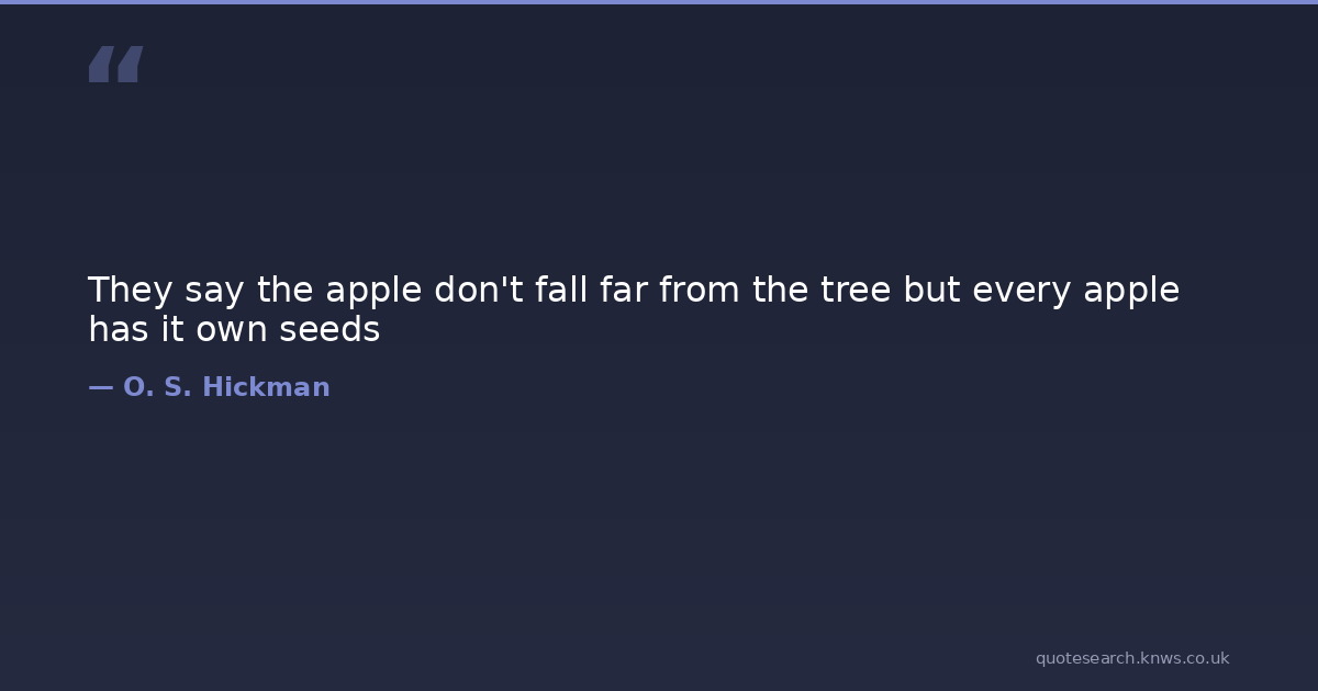 They say the apple don't fall far from the tree but every apple has it own seeds being category-of-people distinquish elevation energy existance fate growing inexactitude inspired-mind life optimism-quotes parents-and-children planting profiling raising rise seeds spirit success Download Image Share on X Share on Facebook Copy Link
