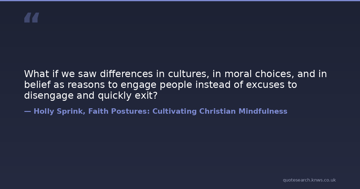 What if we saw differences in cultures, in moral choices, and in belief as reasons to engage people instead of excuses to disengage and quickly exit?