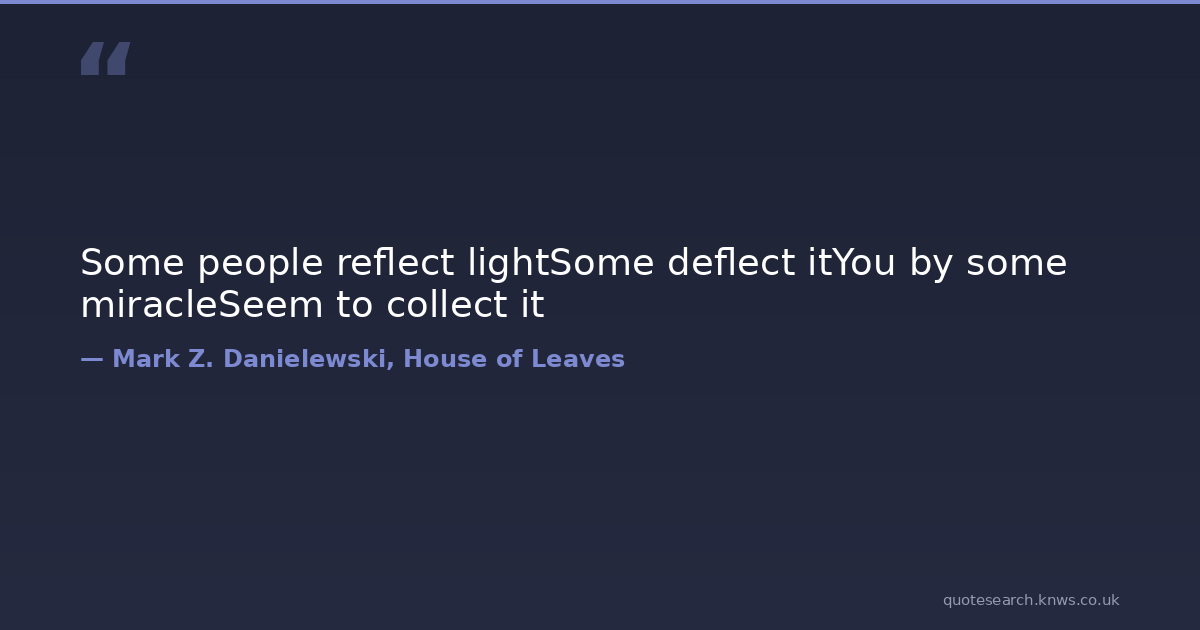 Some people reflect lightSome deflect itYou by some miracleSeem to collect it