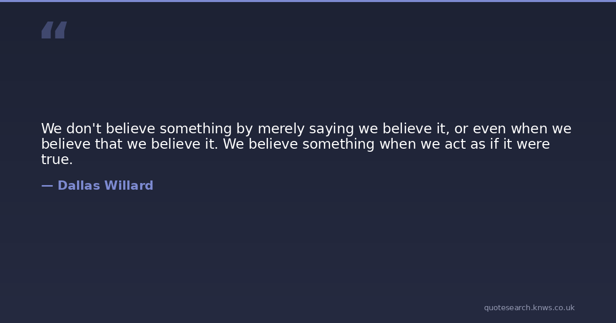 We don't believe something by merely saying we believe it, or even when we believe that we believe it. We believe something when we act as if it were true.