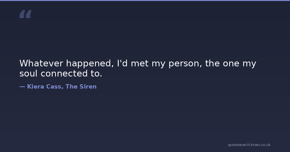Whatever happened, I'd met my person, the one my soul connected to. kiera-cass love soul soulmate the-siren Download Image Share on X Share on Facebook Copy Link