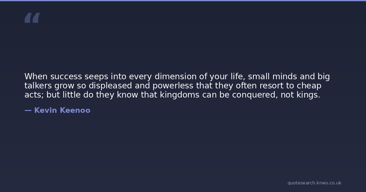 When success seeps into every dimension of your life, small minds and big talkers grow so displeased and powerless that they often resort to cheap acts; but little do they know that kingdoms can be conquered, not kings.