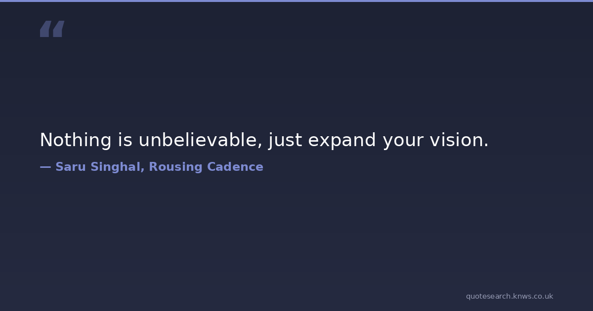 Nothing is unbelievable, just expand your vision. achievement belief unbelievable Download Image Share on X Share on Facebook Copy Link