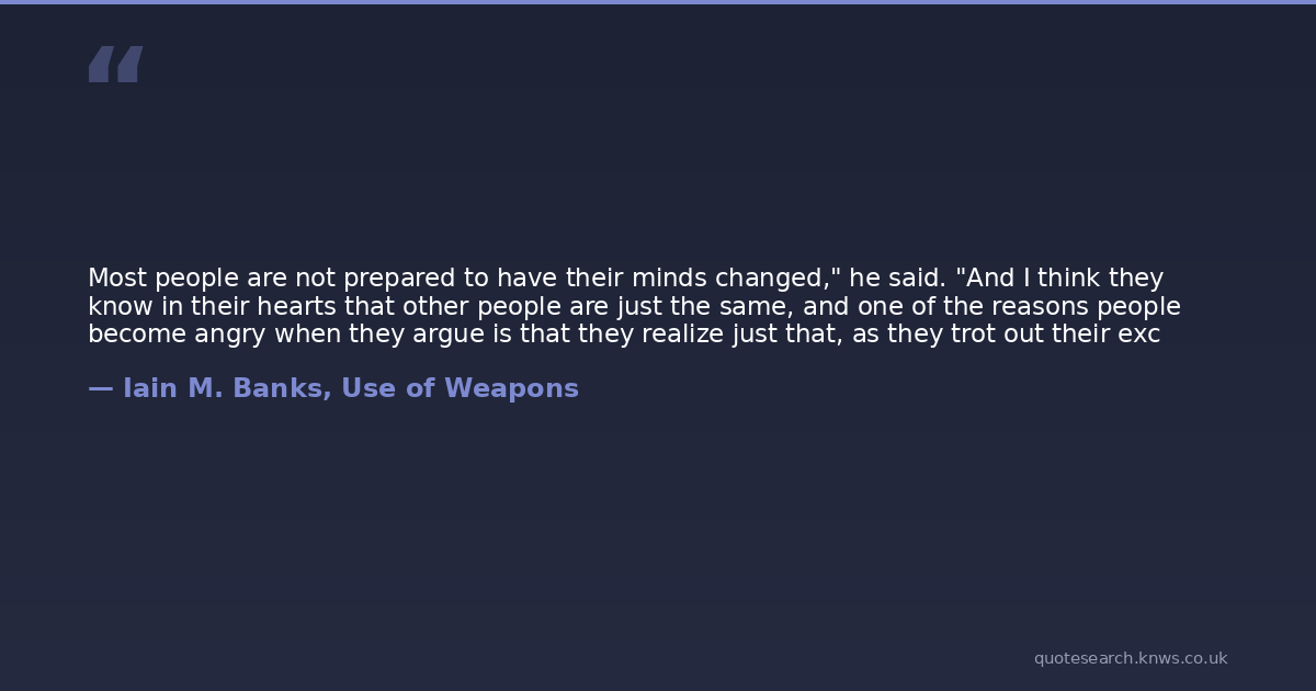 Most people are not prepared to have their minds changed," he said. "And I think they know in their hearts that other people are just the same, and one of the reasons people become angry when they argue is that they realize just that, as they trot out their exc