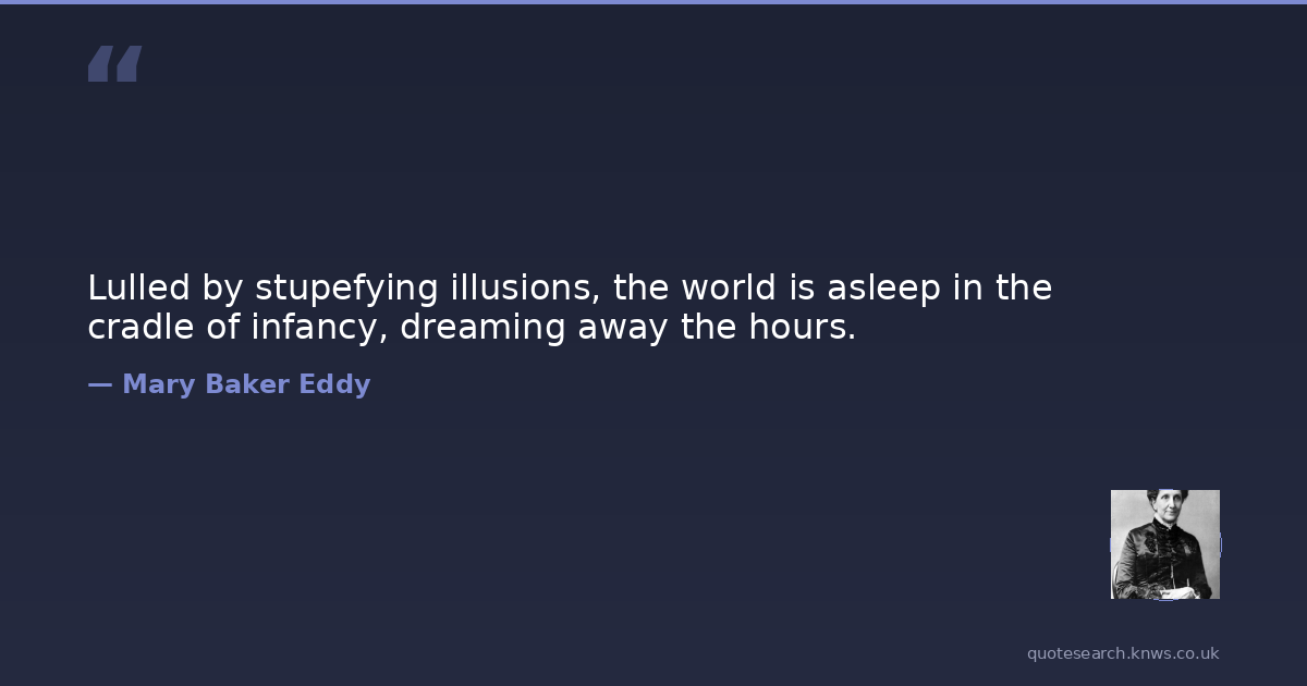 Lulled by stupefying illusions, the world is asleep in the cradle of infancy, dreaming away the hours.