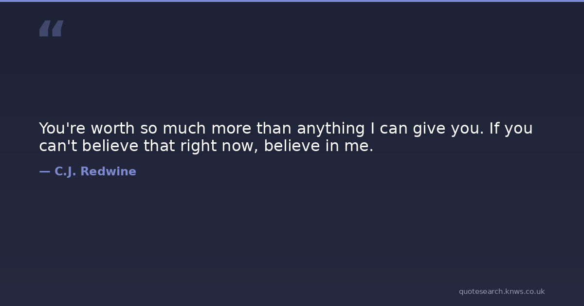 You're worth so much more than anything I can give you. If you can't believe that right now, believe in me.