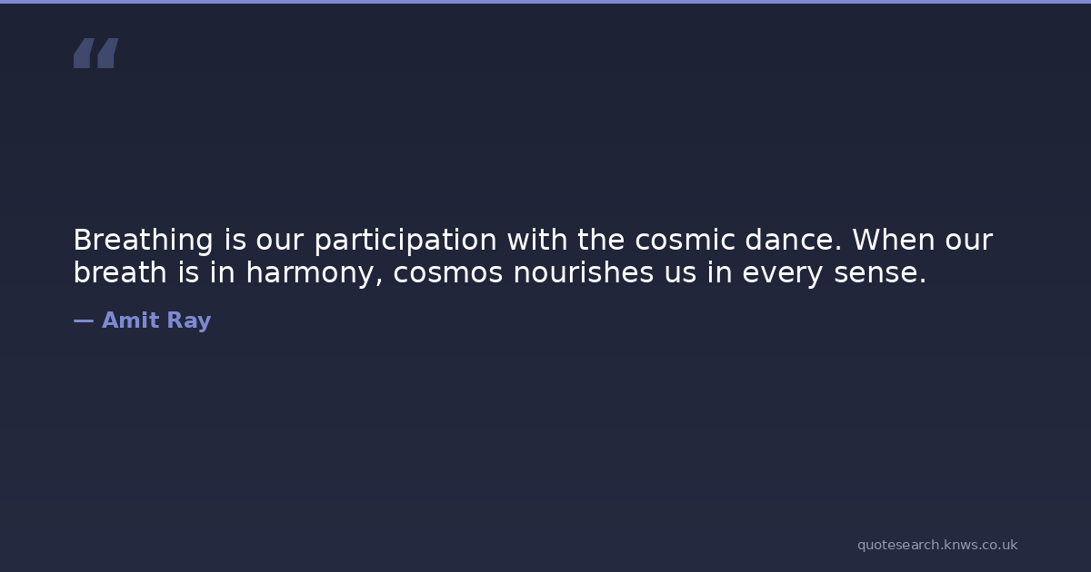 Breathing is our participation with the cosmic dance. When our breath is in harmony, cosmos nourishes us in every sense.