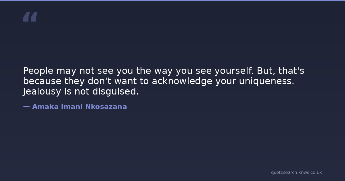 People may not see you the way you see yourself. But, that's because they don't want to acknowledge your uniqueness. Jealousy is not disguised.