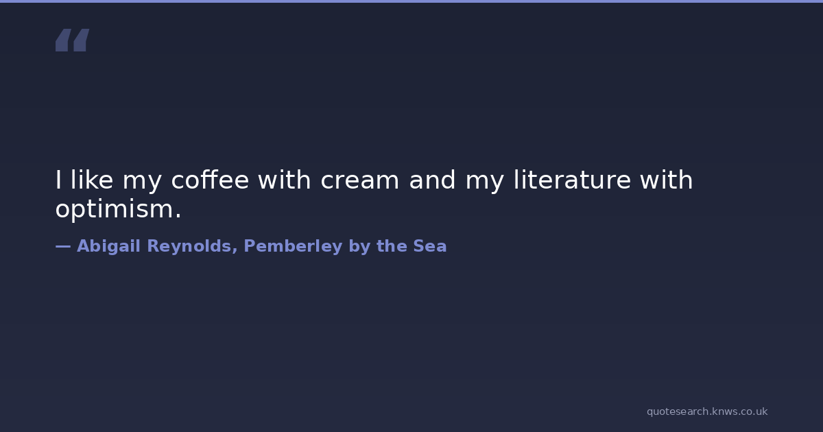 I like my coffee with cream and my literature with optimism. coffee literature Download Image Share on X Share on Facebook Copy Link