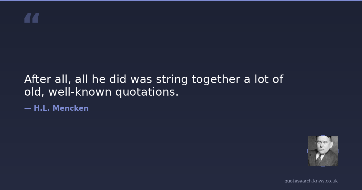 H.L. Mencken was a 19th-century American journalist and writer. Henry Louis Mencken was an American journalist, essayist, satirist, cultural critic, and scholar of American English. He commented widely on the social scene, literature, music, prominent politicians, and contemporary movements. Read more on Wikipedia →