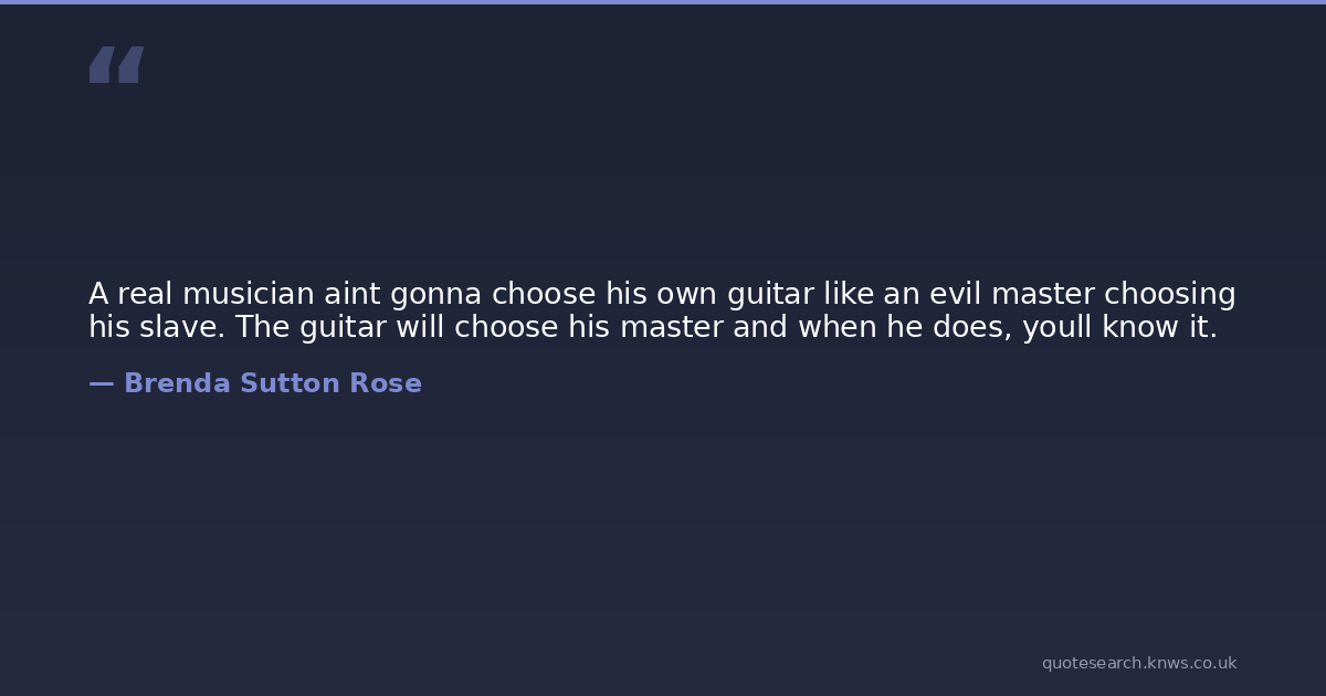 A real musician aint gonna choose his own guitar like an evil master choosing his slave. The guitar will choose his master and when he does, youll know it.