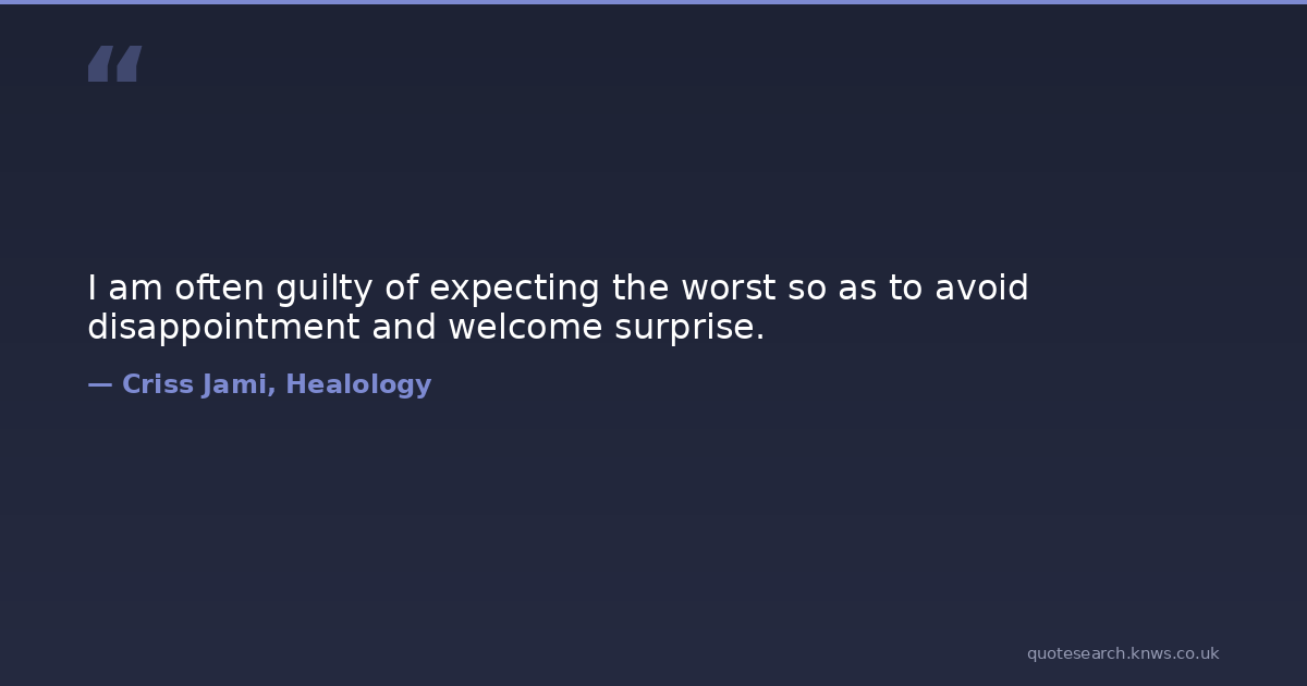 I am often guilty of expecting the worst so as to avoid disappointment and welcome surprise.