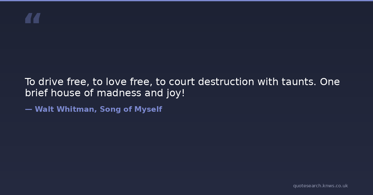 To drive free, to love free, to court destruction with taunts. One brief house of madness and joy!