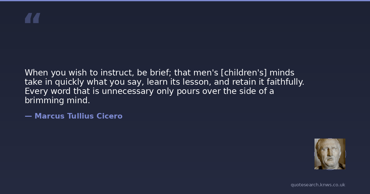 When you wish to instruct, be brief; that men's [children's] minds take in quickly what you say, learn its lesson, and retain it faithfully. Every word that is unnecessary only pours over the side of a brimming mind.