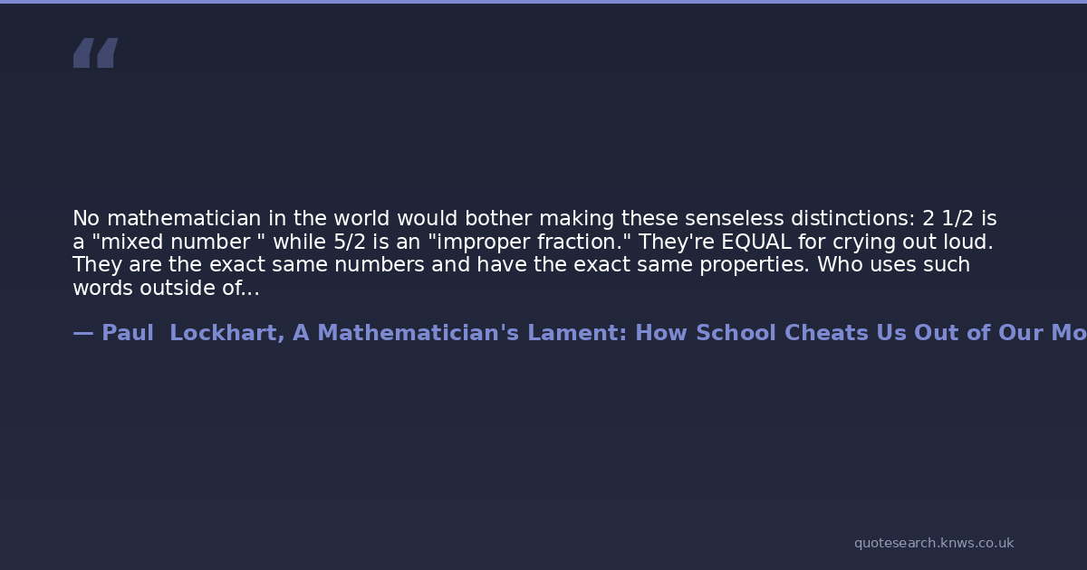 No mathematician in the world would bother making these senseless distinctions: 2 1/2 is a "mixed number " while 5/2 is an "improper fraction." They're EQUAL for crying out loud. They are the exact same numbers and have the exact same properties. Who uses such words outside of fourth grade?